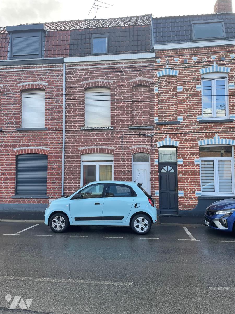 Maison à NIEPPE route vers le Bizet cette maison de ville 2 mitoyennetés composée d'un hall d'entrée, salon séjour, cuisine, salle de bains cellier/lingerie, terrasse et jardin, au 1er étage 2 chambres dont 1 passante, au second deux chambres. prévoir rafraichissement général.